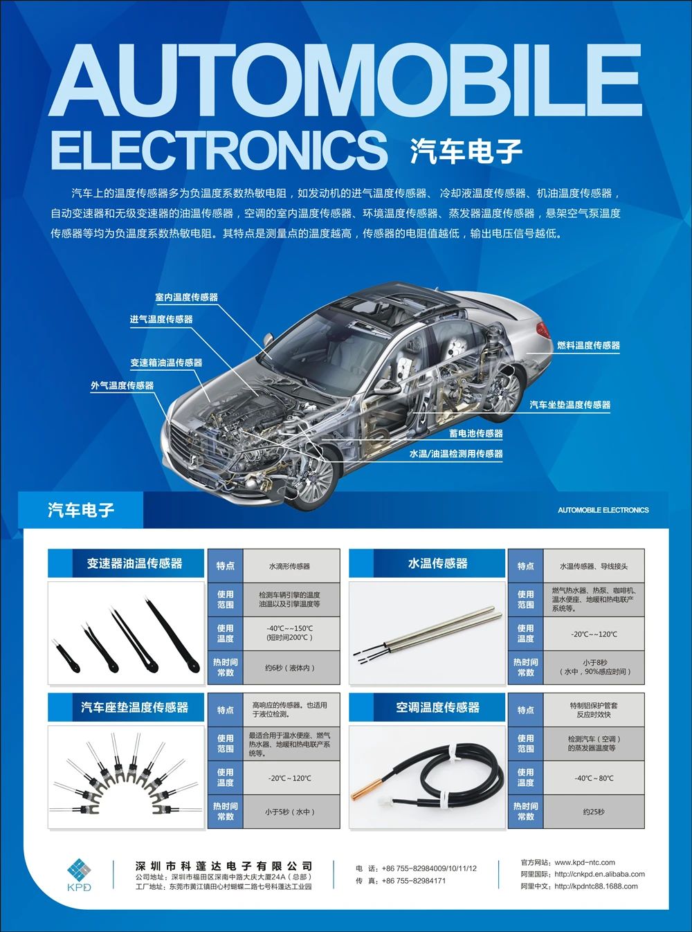 科蓬達應用于新能源汽車的定制款溫度傳感器主要有以下幾種:
